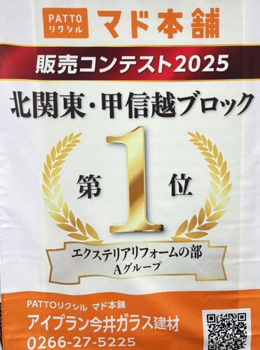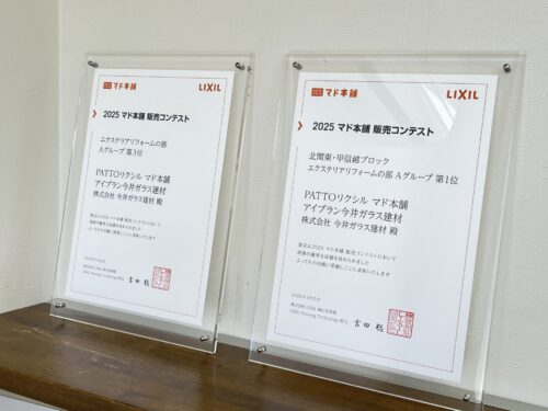 マド本舗のHPのトップ画面にもバッチが付いているのを見てくれた方もいるかと思いますが。販売コンテスト2025エクステリア部門で受賞しました!
