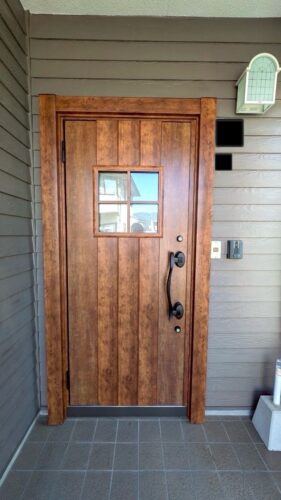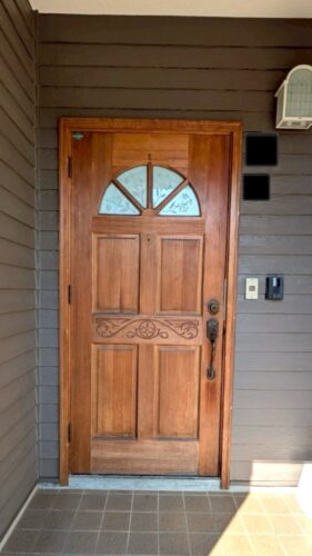既存の玄関ドアと同じ雰囲気・カラーのものと取替することができ、大変喜んでいただけました。
