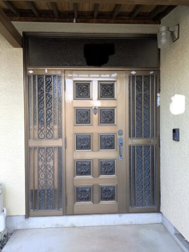 単板ガラスの玄関ドアで寒かったし、電気錠の玄関ドアにできるなら防犯面でも安心と思い今回、新しいドアに取替えようとご決断、ご依頼いただきました。