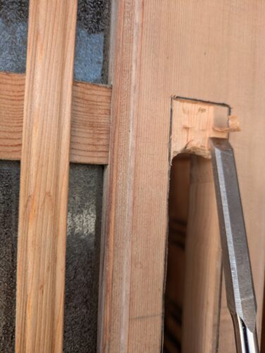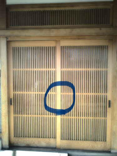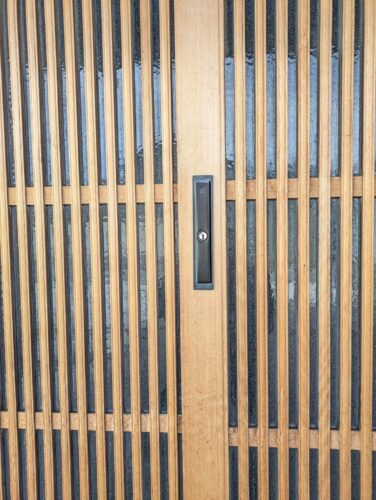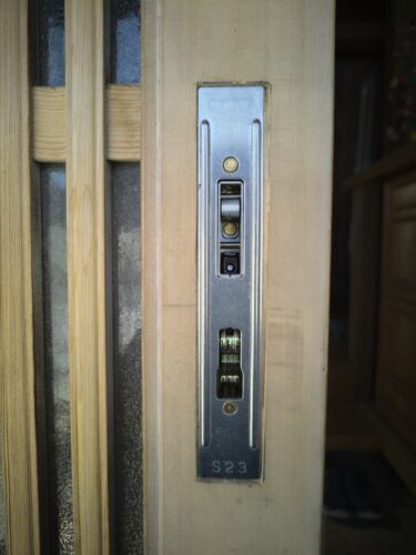 玄関引戸の真ん中にもう一つ錠を取付けたいとのご要望。加工、取付させていただきました。