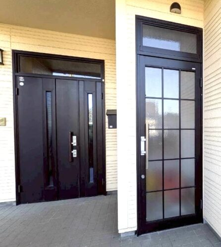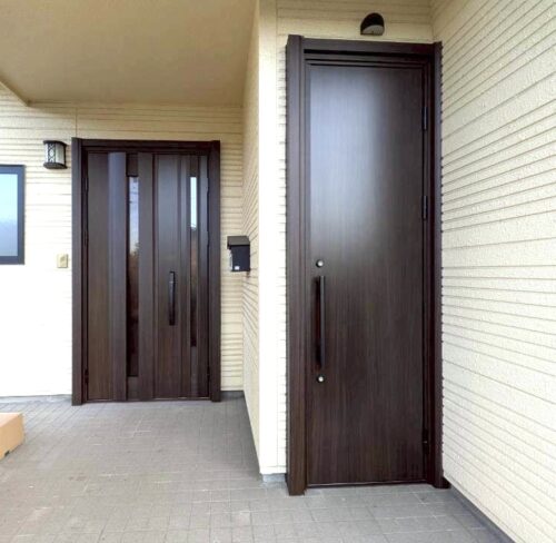 今回は経年劣化で色褪せやキズが目立ってきてしまった玄関ドアとお勝手口ドアの取替の施工例です。