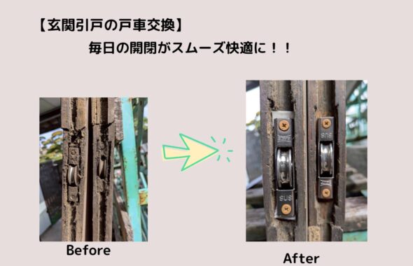 【玄関引戸の戸車交換】毎日の開閉がスムーズ快適に!!