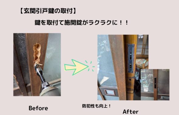 【玄関引戸錠の取付】鍵を取付けて施解錠がラクラクに!!