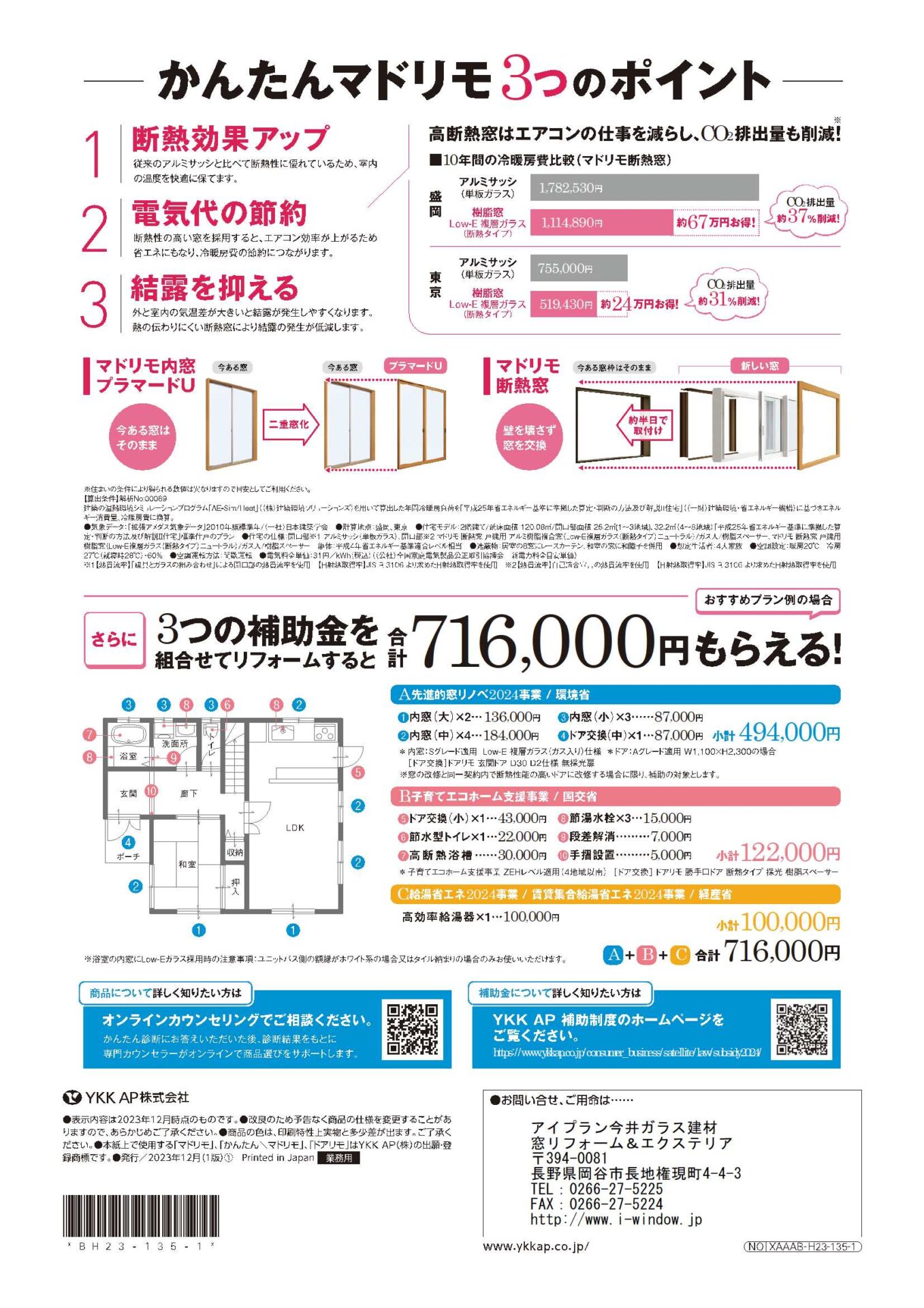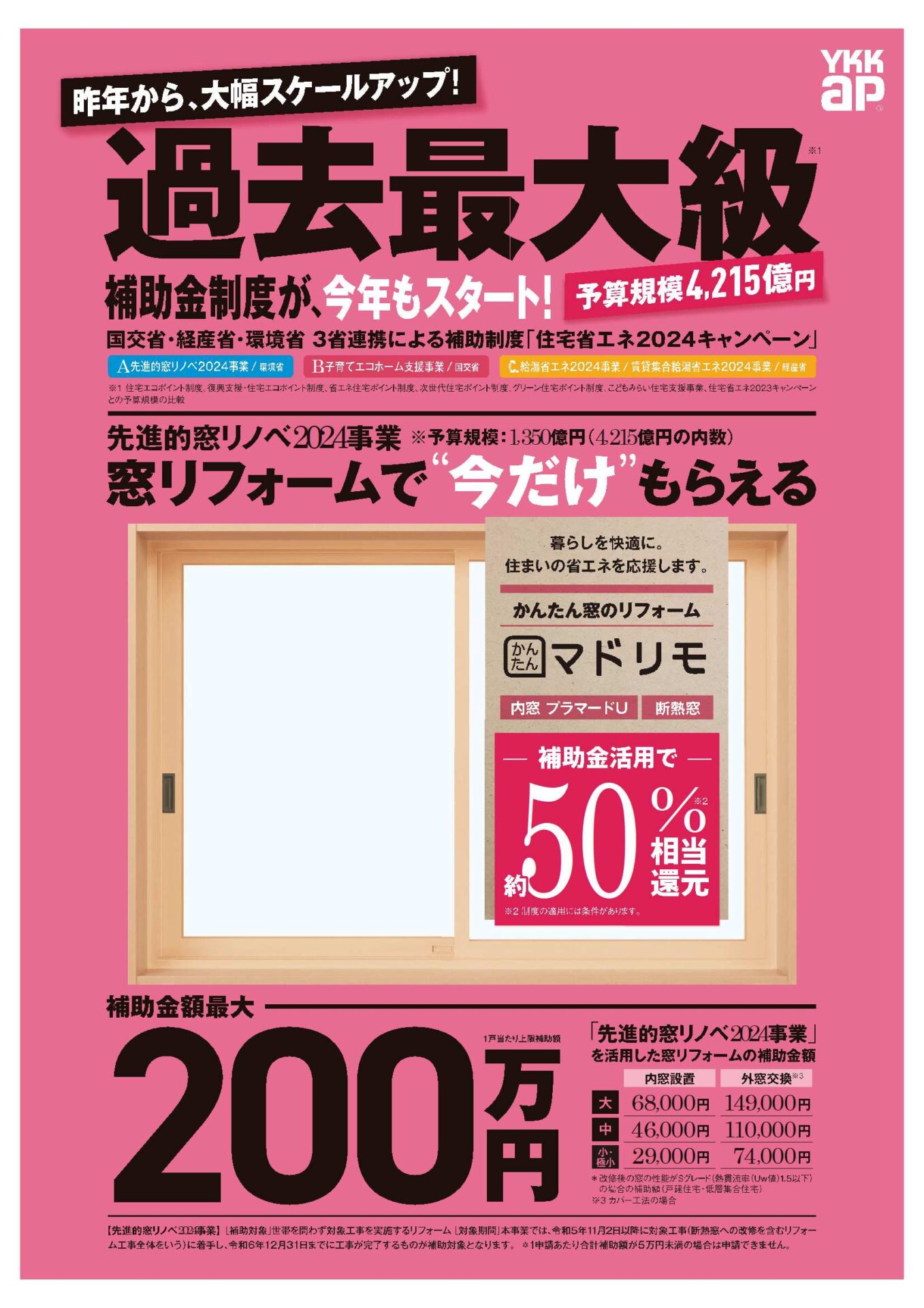 - 2024年度の補助金YKK 先進的窓リノベ事業