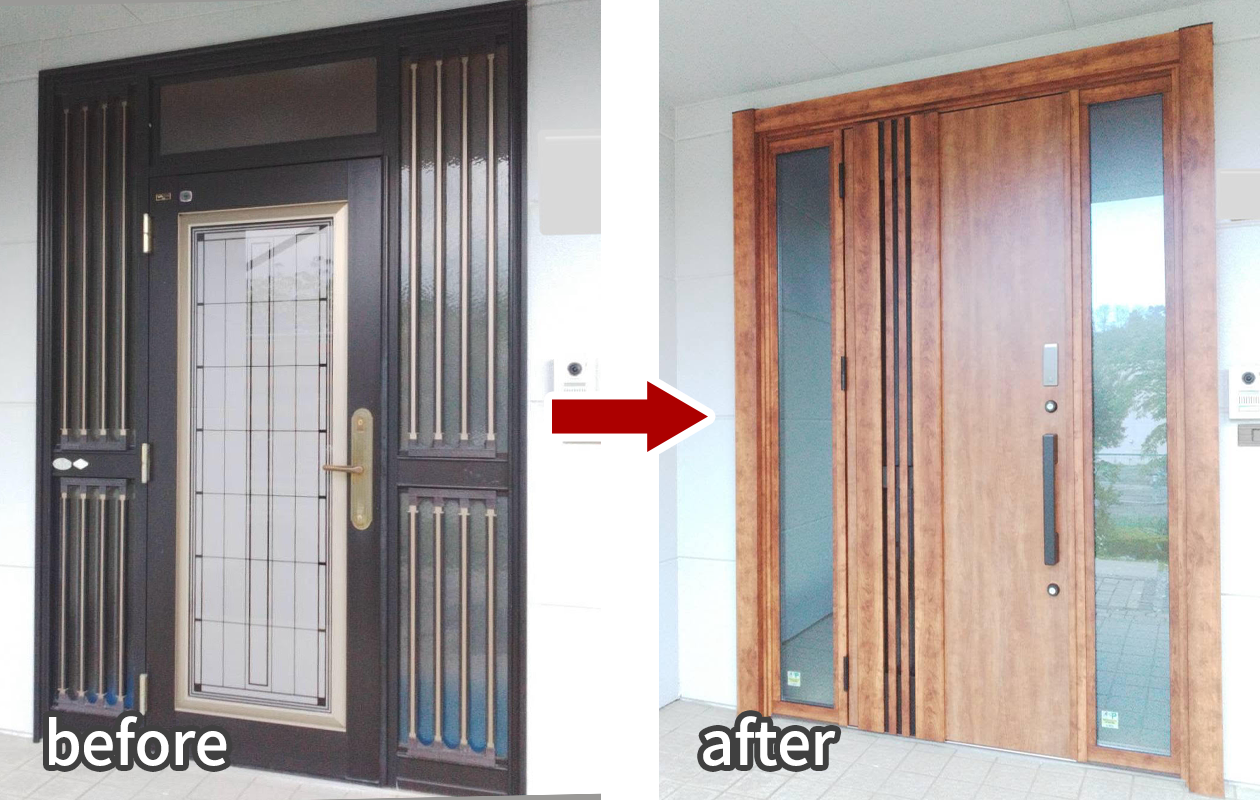 玄関ドア、サッシ、霧除けも取り替えてスッキリ・温か、快適になりました。